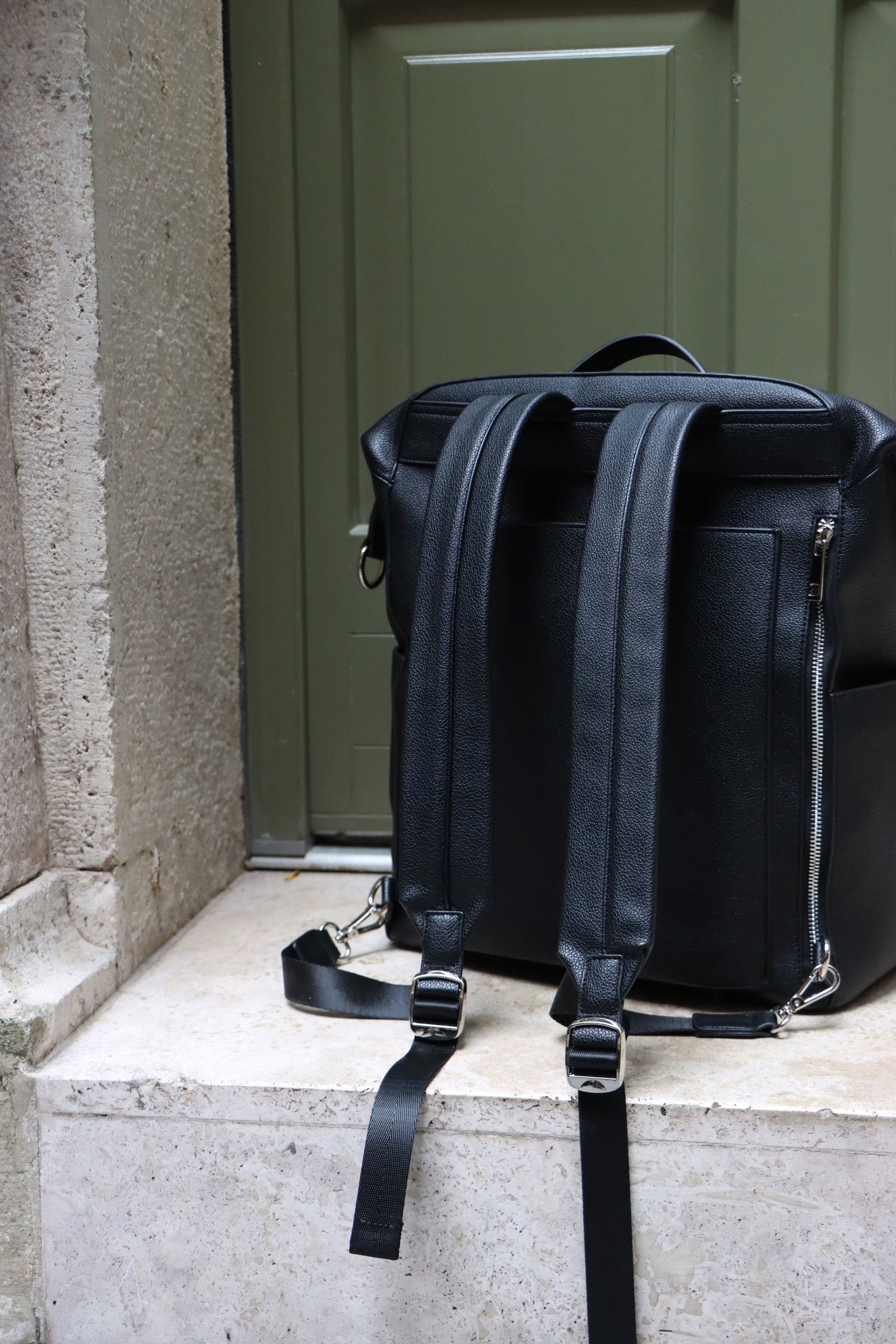 תיק החתלה גב יוקרתי בעיצוב מודרני וניטרלי מגדרית, להורים שלא מוכנים להתפשר על סטייל, סדר ונוחות .ביומיום. התיק עשוי דמוי עור טבעוני איכותי וקל לניקוי, עם נפח גדול במיוחד