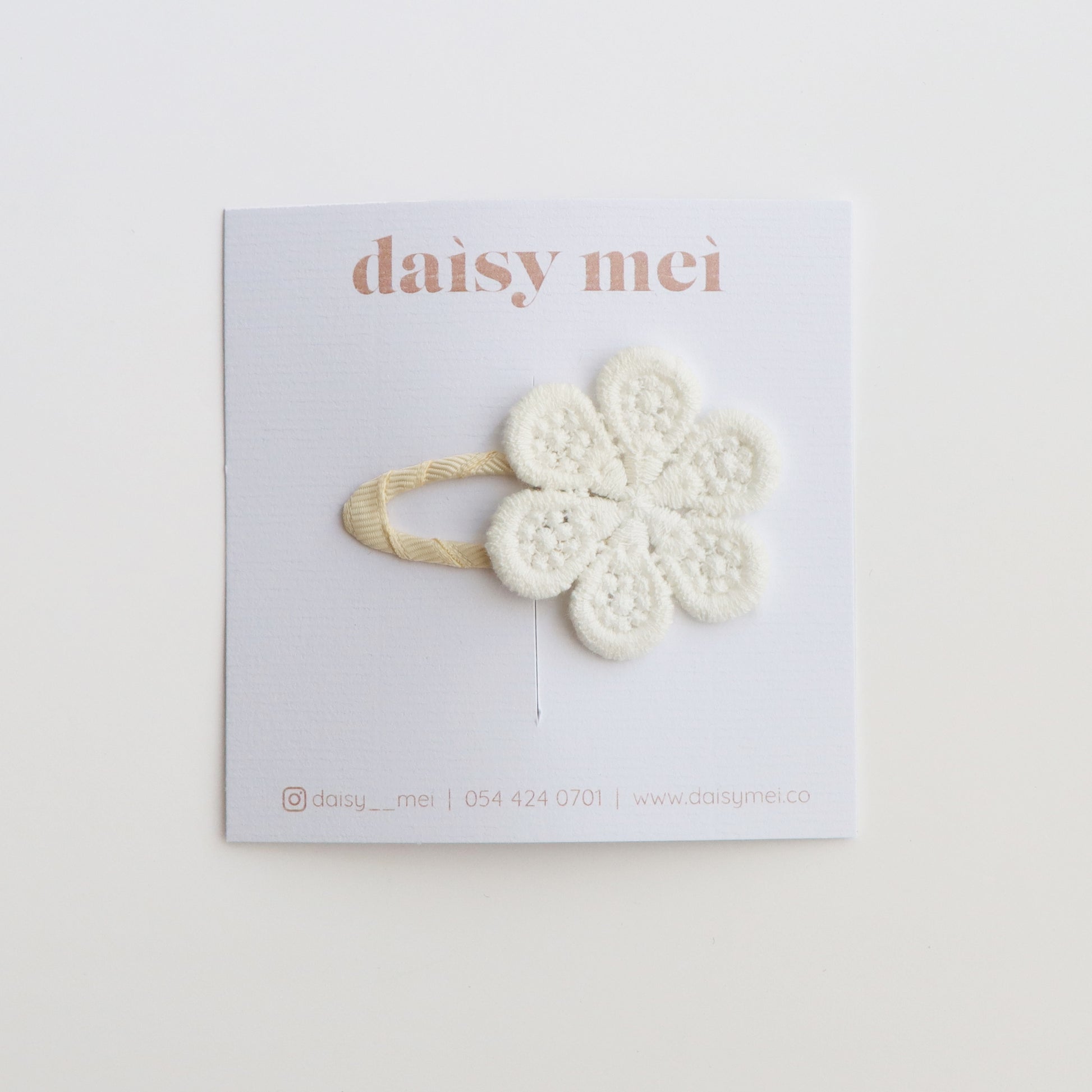 סיכת תיק-תק בשילוב פרח תחרה, למראה קלאסי ועדין