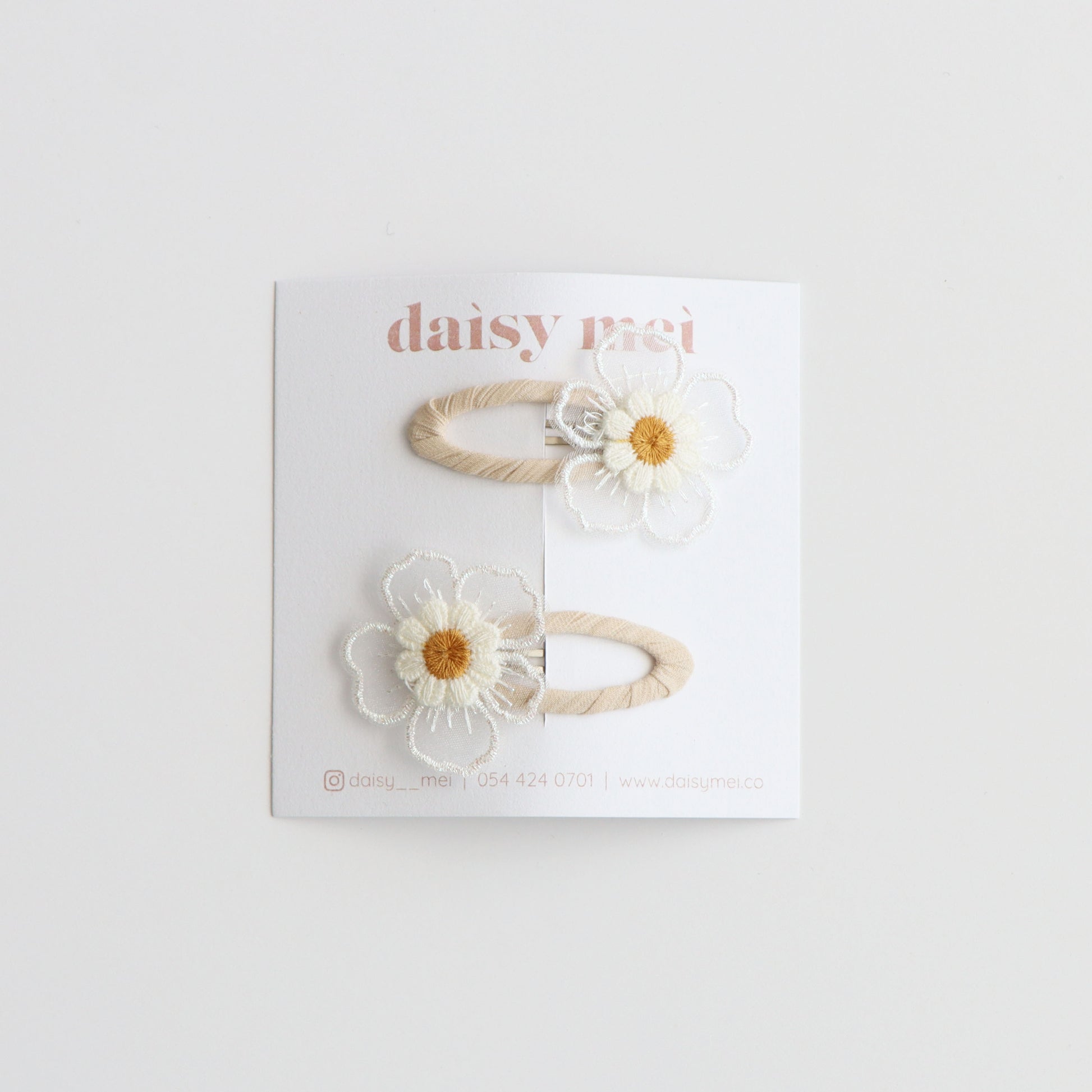 זוג סיכות תיק-תק עם כיסוי בד ופרח, משדרג כל לוק !